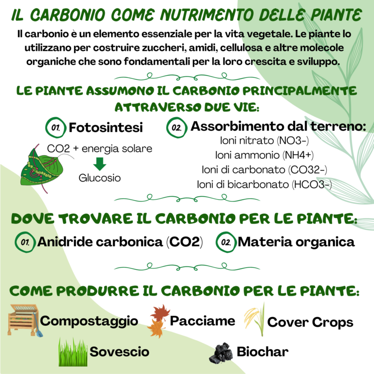 Il carbonio è un elemento essenziale per la vita vegetale. Le piante lo utilizzano per costruire zuccheri, amidi, cellulosa e altre molecole organiche che sono fondamentali per la loro crescita e sviluppo. Le piante assumono il carbonio principalmente attraverso due vie: Dove trovare il carbonio per le piante: La quantità di carbonio disponibile nel terreno…